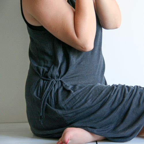 Aussitôt que la température dépasse 27 C°, mon corps fond. Cette liquéfaction est bien entendu agrémentée de lamentations : trop chaud ou trop froid n'aident jamais mon tempérament. Alors, très très tôt le mardi matin, je me suis cousue une robe spéciale canicule en jersey de lin. Ample, fluide et fraîche.
